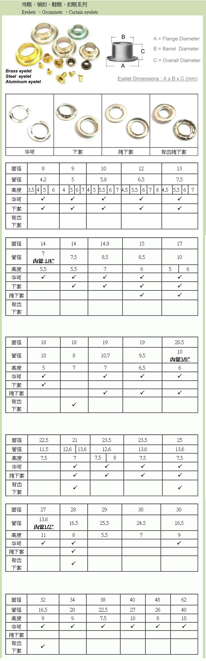 Product Name : | 雞眼 , 銅扣 , 鞋眼 , 扣眼系列 1 |