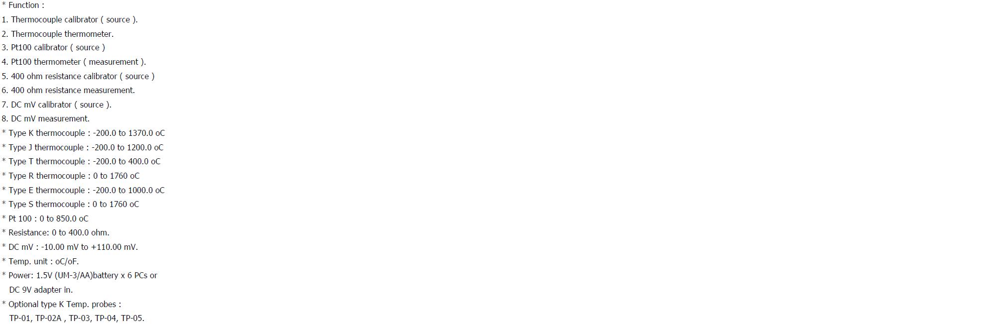 * Type K thermocouple : -200.0 to 1370.0 oC