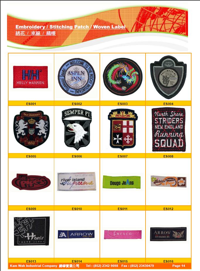 Product Name : | Embroidery/Stitching Patch/Woven Label 繡花/車線/織嘜 |