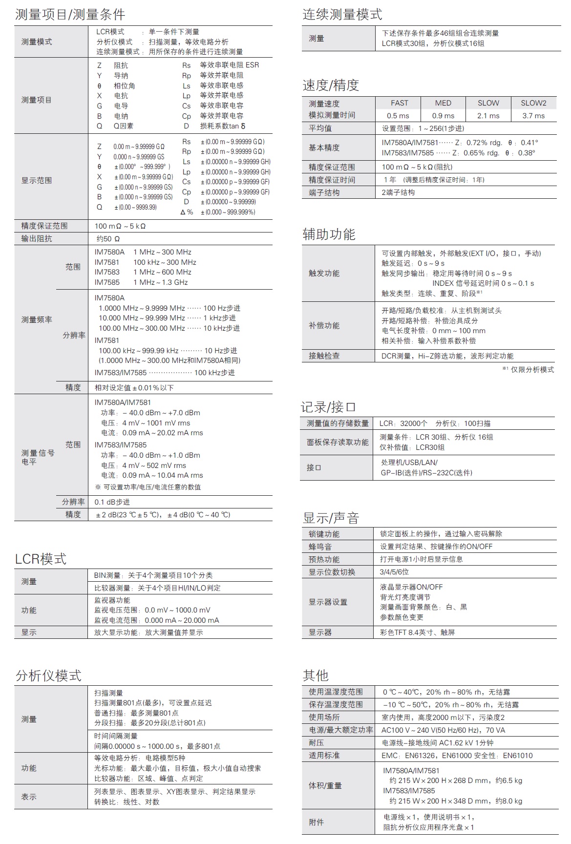 Product Name : | 元器件测量仪器(电感、电容、电阻测量) 阻抗分析仪 IM7580A |