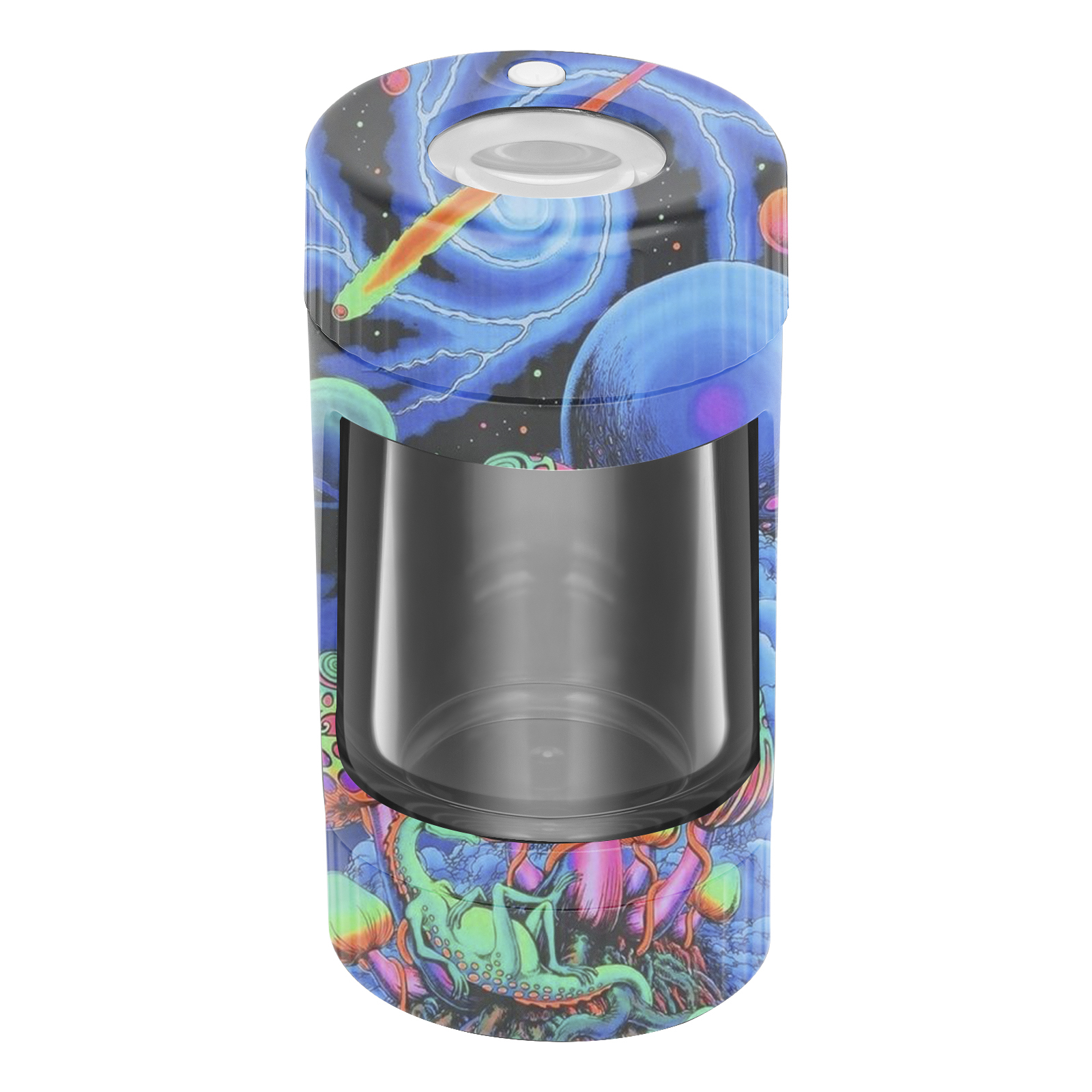 The World’s First rechargeable, pocket-sized magnifying display jar designed for anyone on-the-go who loves inspecting their medicine. With 12 hours of battery life and an airtight seal, this custom stash jar is the ultimate display jar ready for any daily adventure.