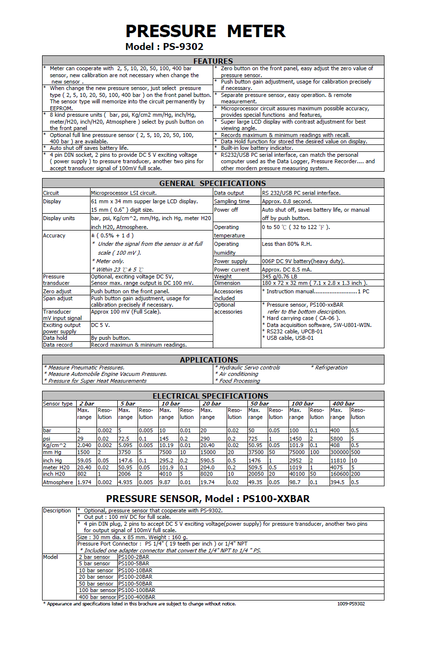 Product Name : | 多功能壓力計 PRESSURE METER PS-9302 |