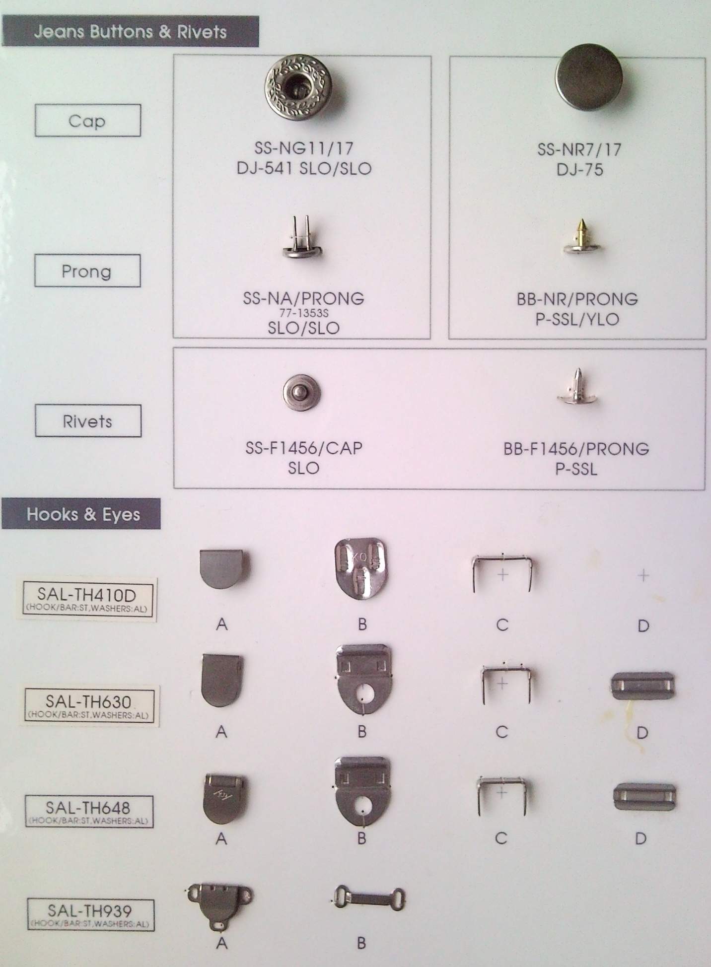 Ring-Prong Press Fasteners / S-Spring Press Fasteners / Ring-Spring Press Fasteners / Jeans Buttons & Rivets / Hooks & Eyes