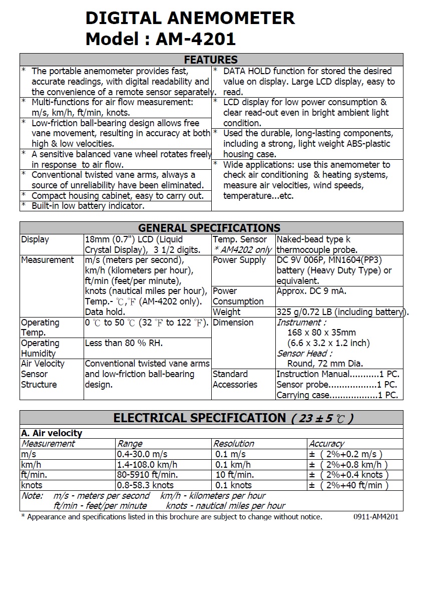Product Name : | DIGITAL ANEMOMETER - AM-4201 風速計 |