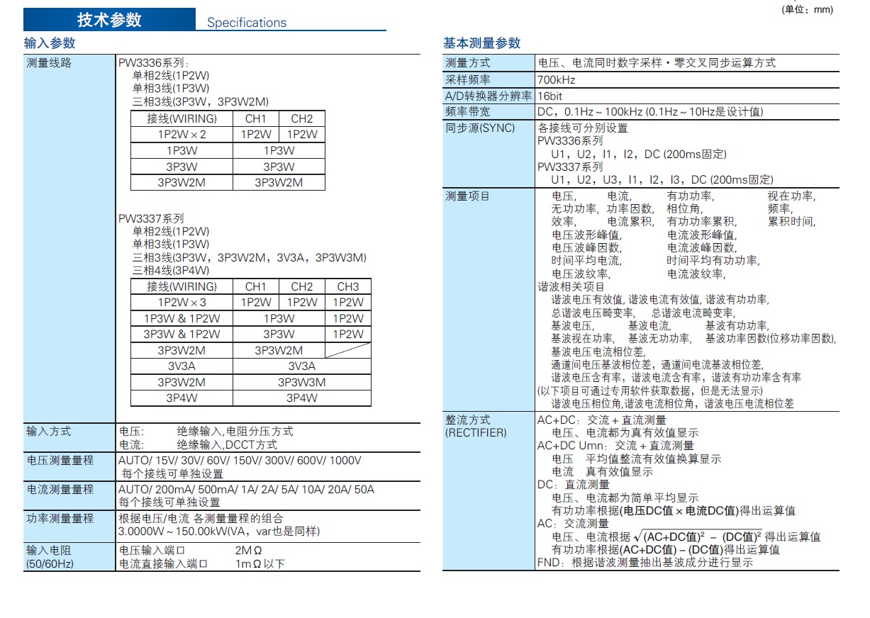 | File Name : Hioki-PW3336 or PW3337 Spec.jpg |