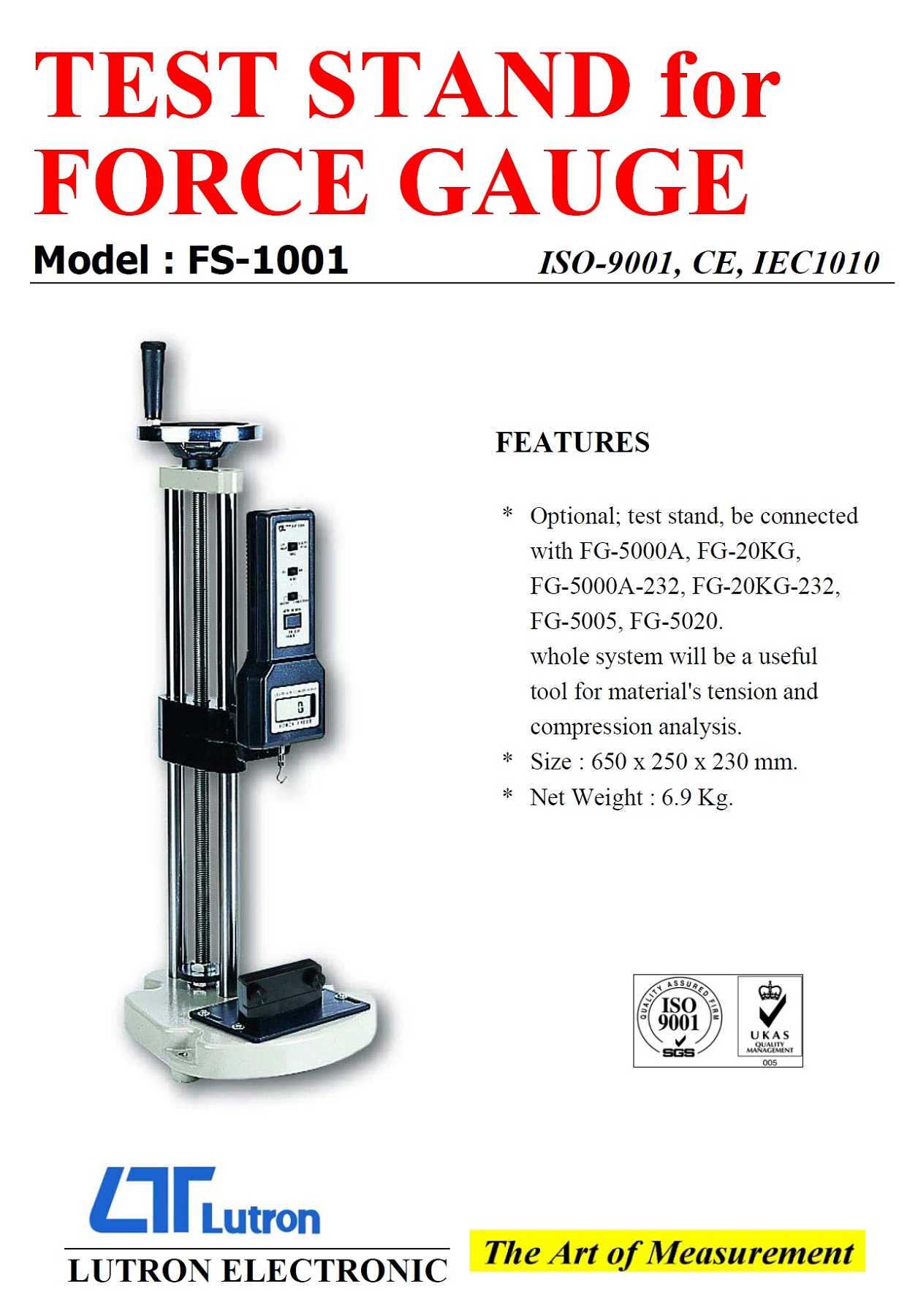 Product Name : | TEST STAND for FORCE GAUGE - FS-1001 拉壓力測試台 |