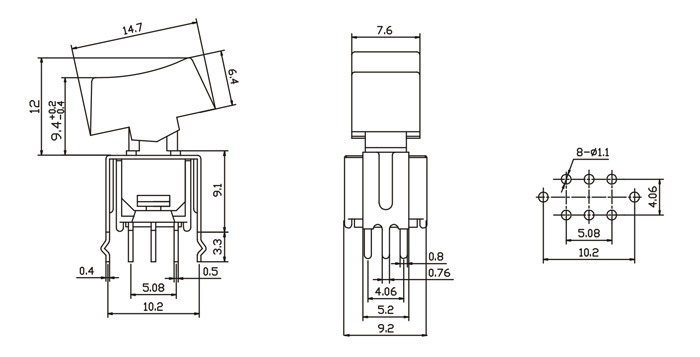 TOGGLE SWITCH (SUB-MINIATURE ROCKER N LEVER HANDLE) 超小型擺臂鈕子開關